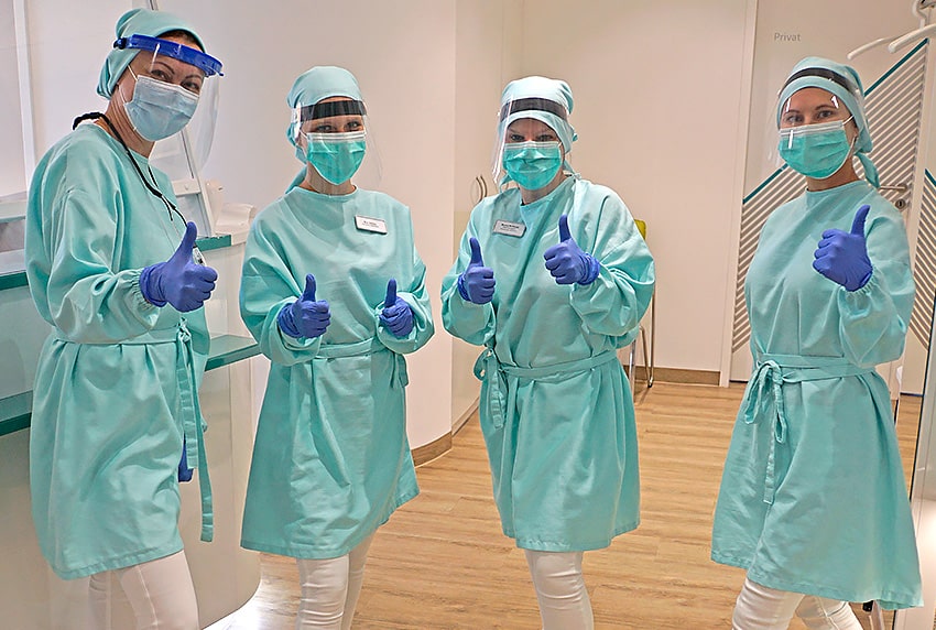Wir arbeiten mit ansässigen Dentallaboren zusammen die ggf. bei Anproben mit dabei sind.